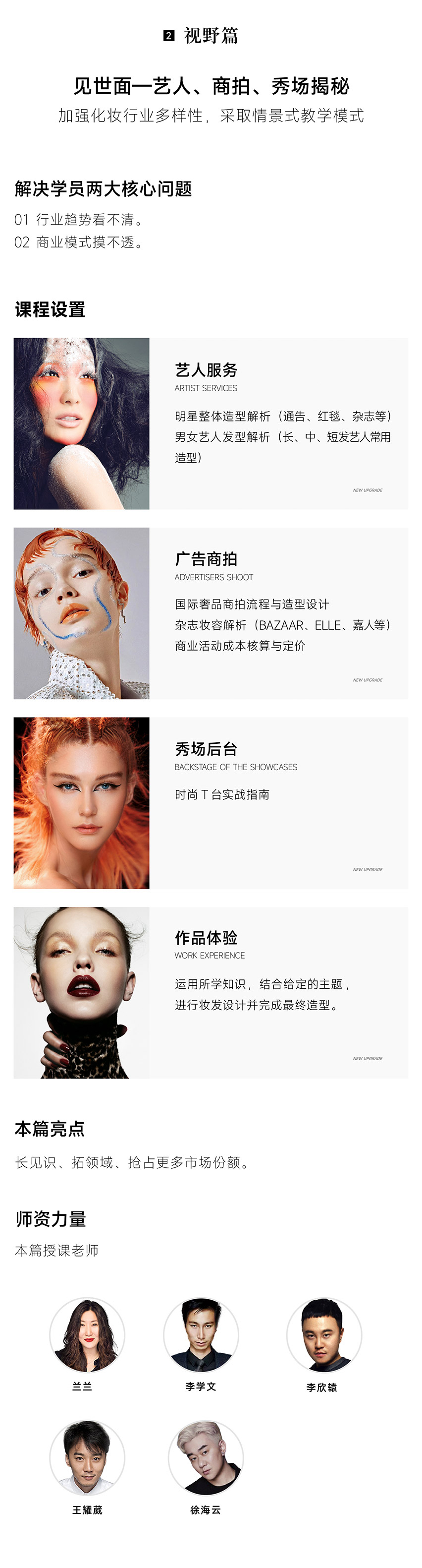国际奢品商拍流程与造型设计 杂志妆容解析(BAZAAR、ELLE、嘉人等) 商业活动成本核算与定价